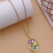 Add a touch of artistic elegance to your look with this stunning oval floral enamel pendant necklace. Crafted with a fine gold-tone chain, this piece features a beautifully detailed pendant showcasing soft pastel shades of purple, yellow, and blue, blended harmoniously for a graceful and eye-catching finish.