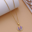 Add a touch of delicate charm to your jewelry collection with this beautifully crafted floral pendant necklace. Featuring a soft lavender enamel background, the round pendant is accented with a graceful gold-tone branch design, highlighted by subtle green enamel leaves and a luminous pearl-style centerpiece. The gentle blend of pastel tones creates a soothing, romantic aesthetic that feels both modern and timeless.