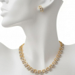 The alternating open gold squares and pavé crystal squares create depth, contrast, and modern luxury. The matching square stud earrings echo the necklace design, delivering a perfectly coordinated and polished look.
