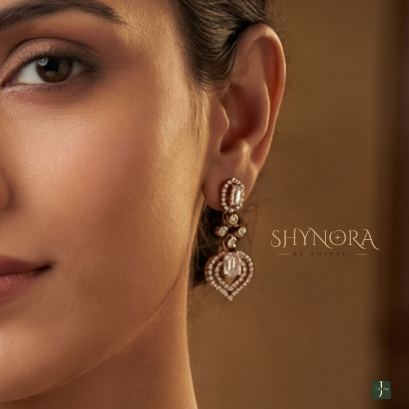 The Golden Leaf Y-Drop Necklace Set is a refined statement piece that blends modern elegance with delicate detailing. Designed in a graceful Y-shaped silhouette, the necklace features intricate leaf-inspired crystal motifs on one side and a sleek stone-studded chain drop on the other, finished with a sparkling heart-shaped pendant.