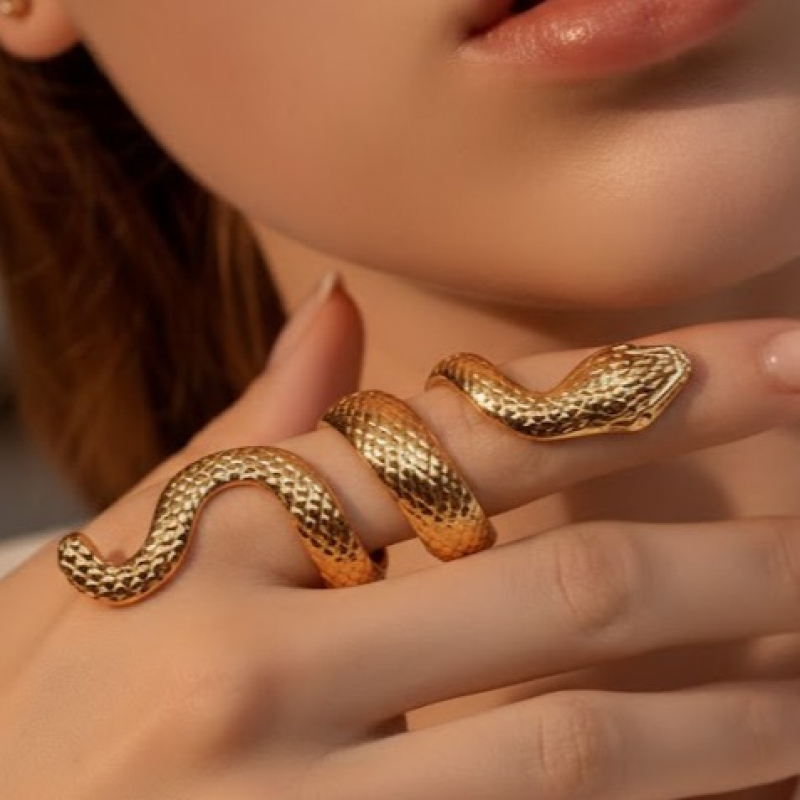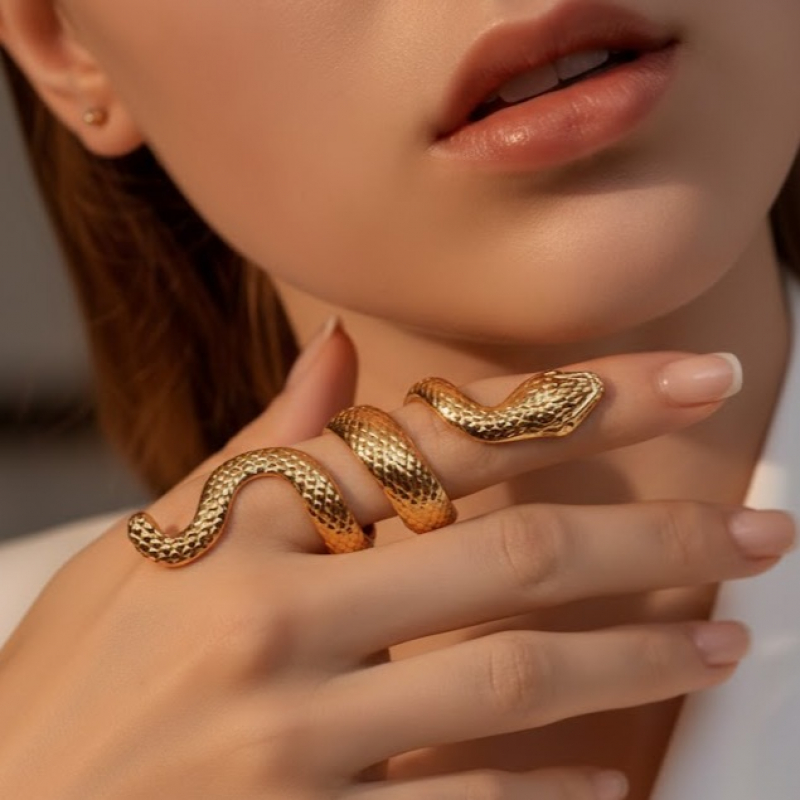 Make a powerful style statement with the Golden Serpent Wrap Statement Ring, designed to capture attention with its unique and artistic form. Inspired by the fluid movement of a snake, this ring elegantly coils around the finger, creating a bold yet sophisticated look. The finely textured surface mimics natural serpent scales, adding depth and a luxurious feel to the design. Crafted with a high-quality gold polish, it offers a radiant shine that enhances its striking silhouette. Perfect for fashion-forward individuals, this ring pairs beautifully with both modern and edgy outfits. Whether worn alone or styled with other pieces, it instantly elevates your look with confidence and charm.
