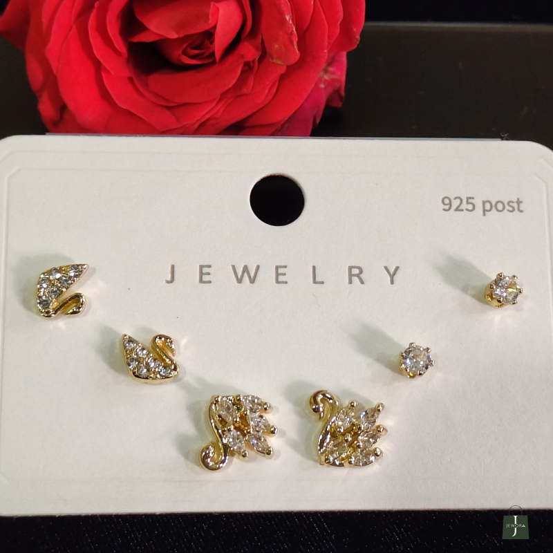 Add charm and versatility to your jewelry collection with this elegant Golden Swan Sparkle Stud Earring Set. This beautifully curated combo features multiple delicate stud designs, including graceful swan motifs, shimmering leaf-inspired shapes, and classic round solitaire studs.