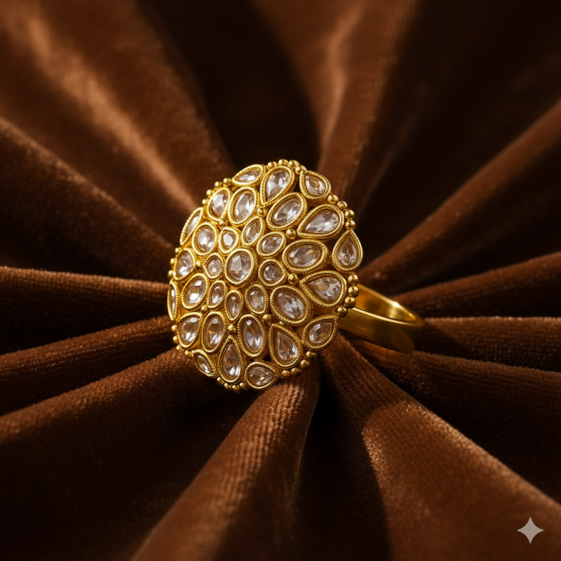 Perfect for pairing with lehengas, sarees, or Indo-western festive wear, this ring is an ideal choice for women who wish to make a striking impression.