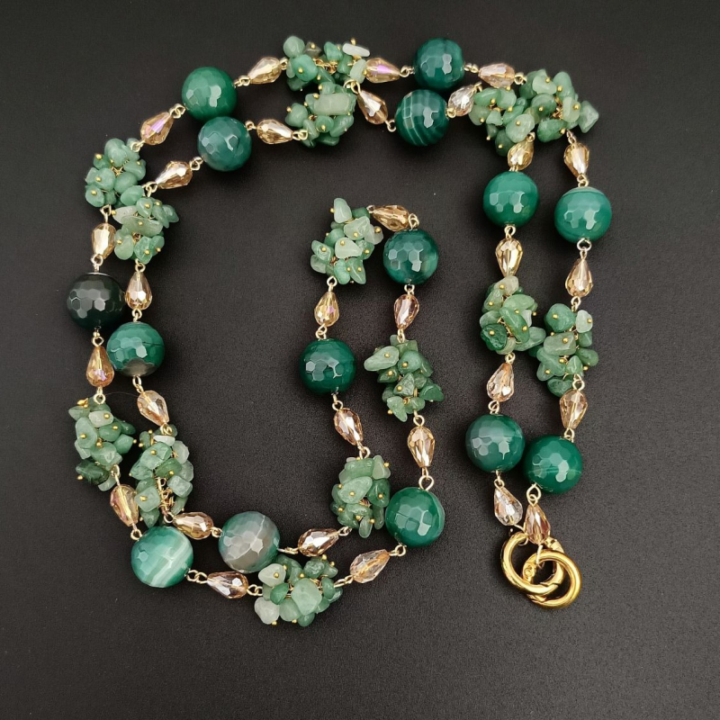 A versatile handmade Green Aventurine and Agate gemstone necklace designed for multiple looks.