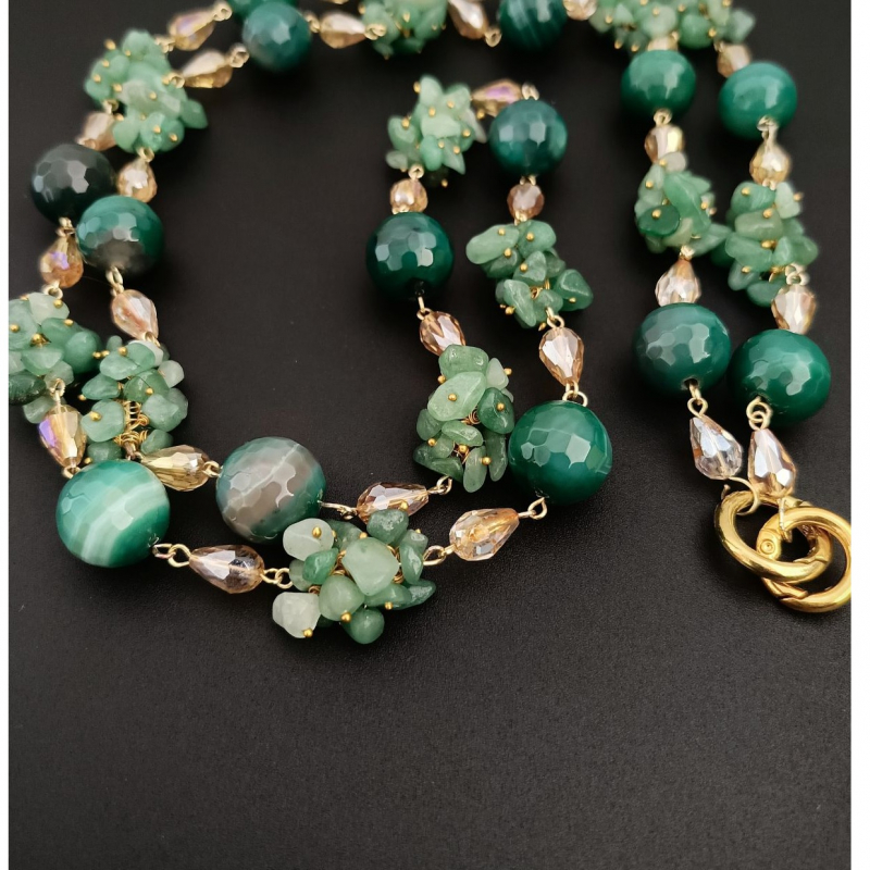 Elevate your jewelry collection with this handmade Aventurine and Agate multi-style necklace, a unique piece designed for both versatility and natural beauty.