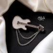 Turn heads with this trendy Crystal Guitar Brooch Pin, designed for music lovers and fashion enthusiasts. Crafted in a sleek silver tone, this brooch features a guitar silhouette highlighted with clear crystal stones and a decorative double-chain detail that adds a modern edge. Perfect for blazers, jackets, dresses, scarves, and bags, this piece adds a bold yet classy statement to any outfit.