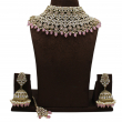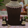 Introducing the stunning Gulbahar Blush Kundan Choker Set, crafted to add royal charm to your bridal look. This heavily detailed choker features intricate layers of shimmering white kundan stones arranged in floral and teardrop patterns, creating a rich and luxurious design.