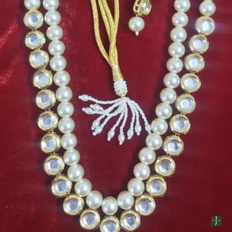 Pairs beautifully with silk sarees, Banarasi fabrics, ivory outfits, or pastel ensembles.This set embodies understated luxury, where the brilliance of kundan stones complements the softness of classic pearls, making it versatile for both bridal and semi-bridal styling.
