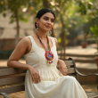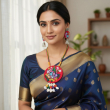 The style is characterized as artisanal, handcrafted jewelry with a traditional Indian or bohemian aesthetic, blending fabric arts with natural elements.