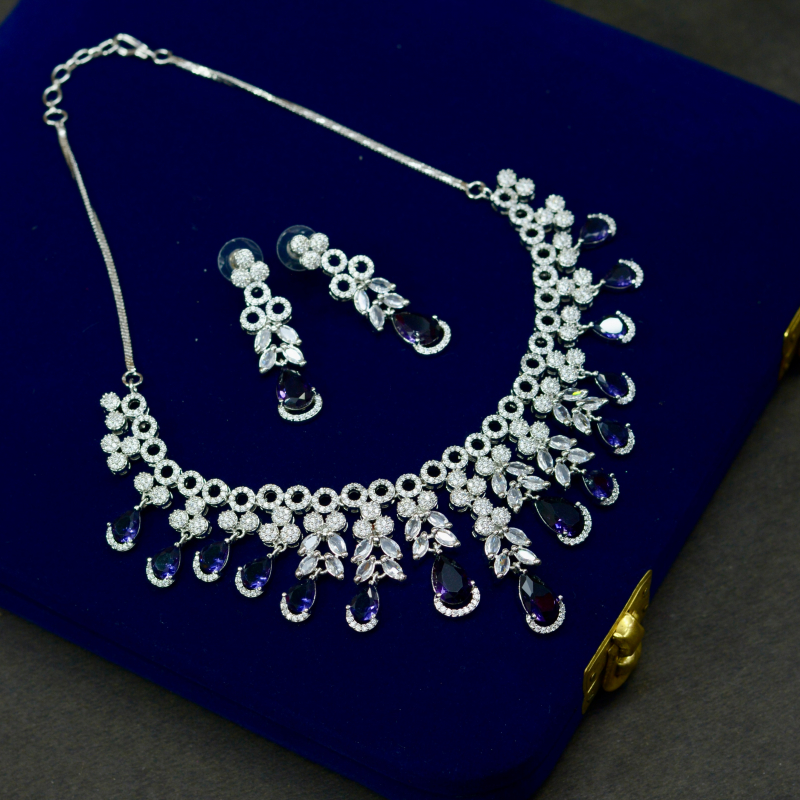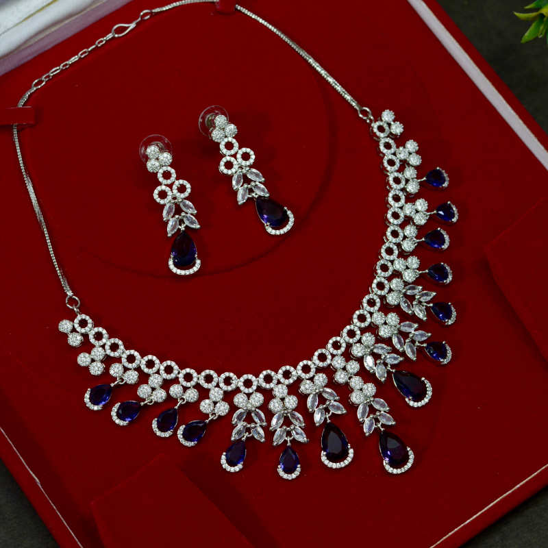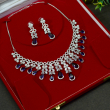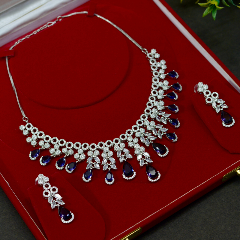 This Heavy Blue Dangling Cluster Necklace Set features layered blue drops with intricate crystal detailing for a bold, luxurious impact. The rich design creates dramatic movement and brilliance, making it ideal for grand occasions, festive gatherings, and statement styling at great value.