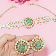 Step into regal elegance with the Heeramandi Inspired Golden Polki Choker, a masterpiece that reflects timeless royal charm. Crafted in a rich gold polish, this choker features exquisite polki-style detailing that captures the essence of traditional artistry. The design is beautifully enhanced with deep emerald green stones, adding a bold and luxurious touch to its overall look. Intricate craftsmanship and delicate arrangement make it perfect for bridal and festive wear. Sitting gracefully on the neckline, it creates a statement of sophistication and heritage. This choker is an ideal choice for those who love classic beauty with a hint of royal grandeur.