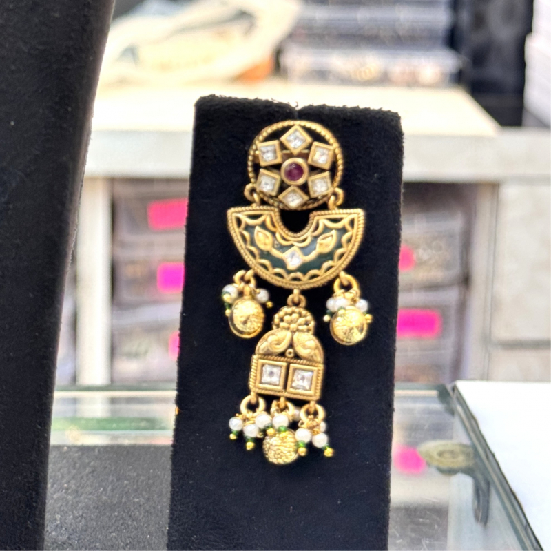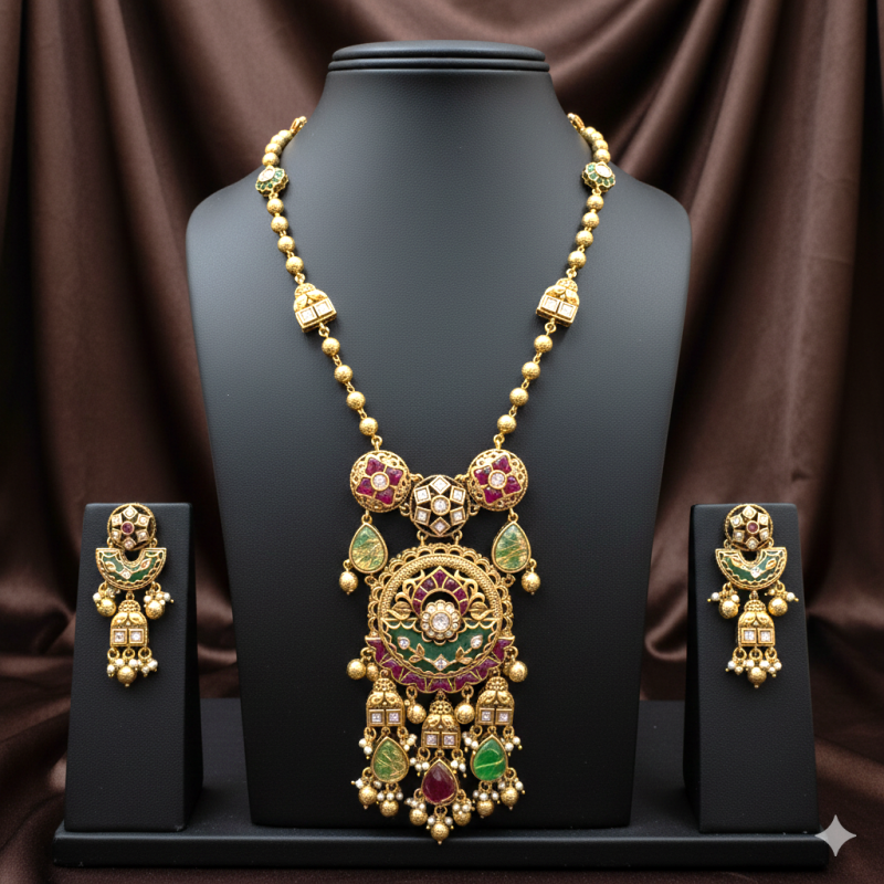 The Heritage Meenakari Temple Haar by Jewora reflects the grandeur of Indian craftsmanship, making it perfect for weddings, cultural celebrations, and festive occasions. A symbol of tradition and opulence, this set is a true heirloom piece for women who appreciate timeless elegance.