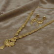 Embrace timeless sophistication with the Royal Paisley Heritage Mala, a stunning tribute to traditional craftsmanship. This gold-tone set features a graceful chain of intricate paisley motifs leading to a magnificent, filigree heart-shaped pendant. Paired with matching floral-drop earrings, this ensemble offers a perfect blend of regal charm and delicate detail for any grand occasion.