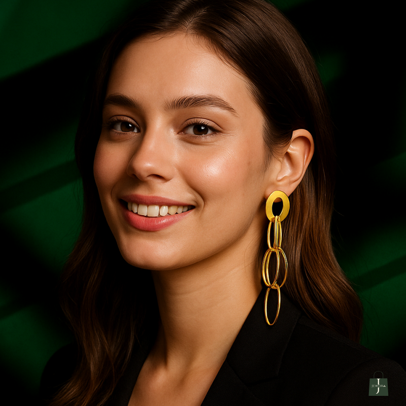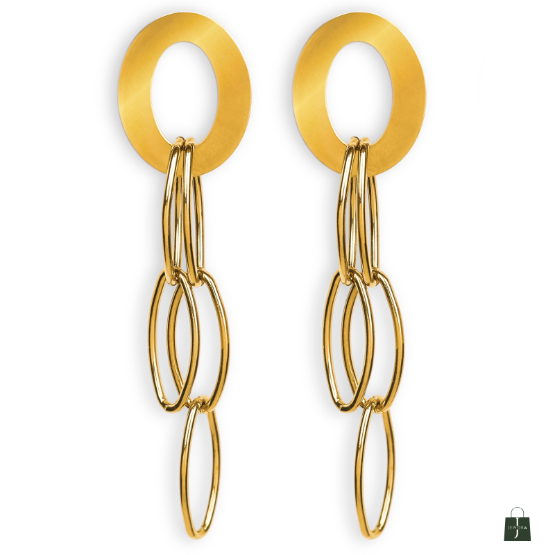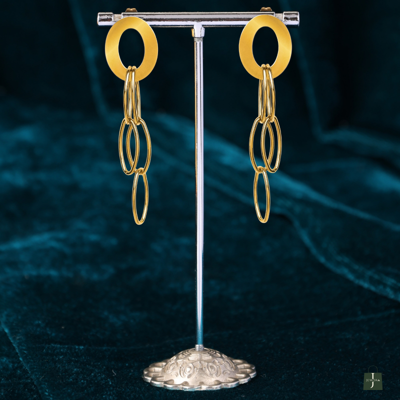These earrings with unique Design add a touch of elegance. Made of Stainless Steel, Anti-Tarnish Plating, Hypoallergenic, and Skin-friendly. Crafted with a high-quality gold-plated finish.