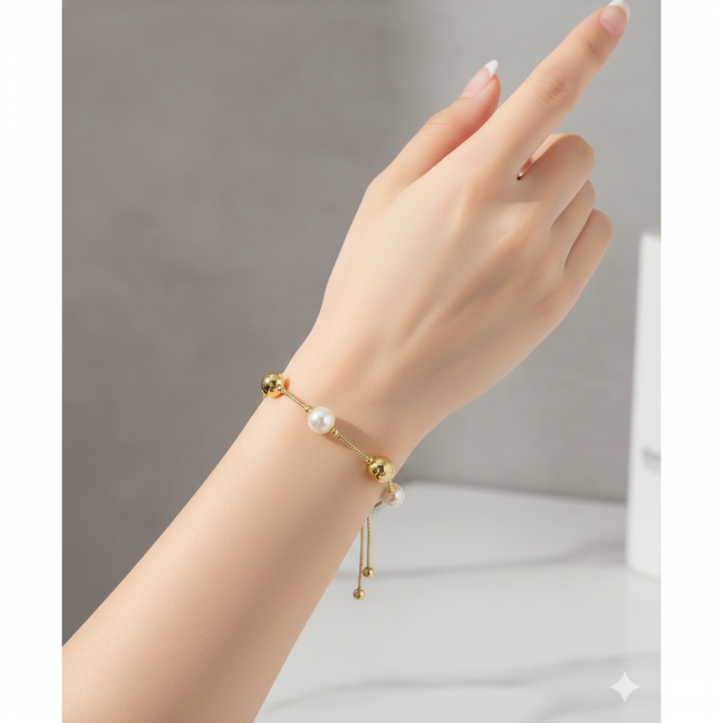 Premium Design: The bracelet features 3 radiant White Pearls and 2 smooth, high-polish Gold Beads.