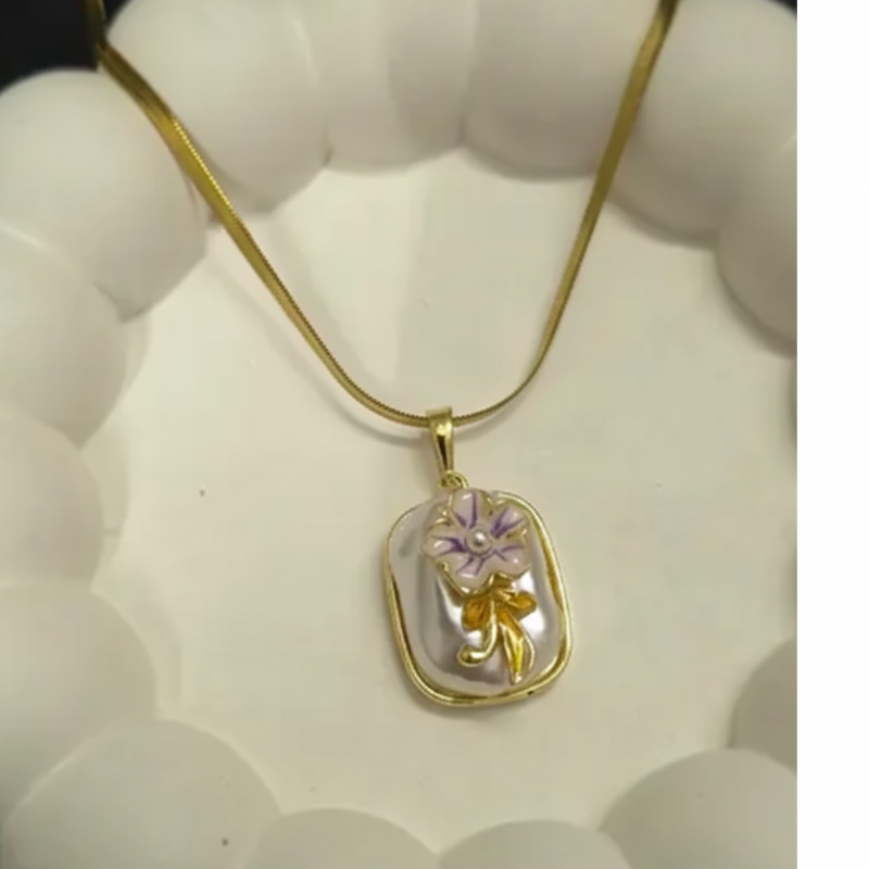 Elegant Dual-Tone Design: Features a captivating flower pendant crafted with contrasting black and white accents set in a high-shine gold finish, offering a sophisticated and iconic look.