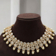 Refined and graceful, this necklace set showcases a beautifully layered arrangement of clear crystal-style stones set in a radiant gold finish. The design features a floral-inspired pattern with round and pear-shaped stones placed closely together to create a rich, luminous look.
