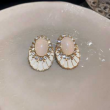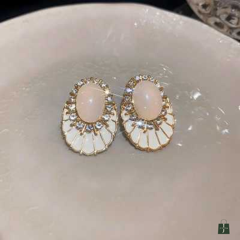 Add a soft, elegant glow to your look with these blush pink oval stone stud earrings, beautifully designed to elevate both everyday and special-occasion outfits. Featuring a smooth pink oval centerpiece surrounded by a sparkling crystal halo and set on a delicate ivory enamel base, these earrings offer a perfect blend of sophistication and charm.