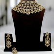 The matching long earrings and maang tikka complement the choker beautifully, creating a complete statement ensemble. Its bold yet graceful design makes it ideal for brides and grand occasions where elegance meets tradition.