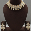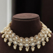 This beautifully crafted choker set features a refined arrangement of pear-shaped and oval white stones set closely in a rich gold finish. The symmetrical layout creates a graceful neckline pattern, giving the piece a luxurious yet balanced appearance.
