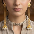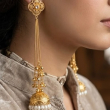 Elegant Brass-Polished Kashmiri Jhumka Earrings crafted with intricate traditional detailing. These earrings feature a beautifully designed top with delicate chain drops leading to a classic jhumka adorned with pearl accents. Perfect for weddings, festivals, and ethnic occasions, they add a graceful and royal charm to any traditional outfit.
