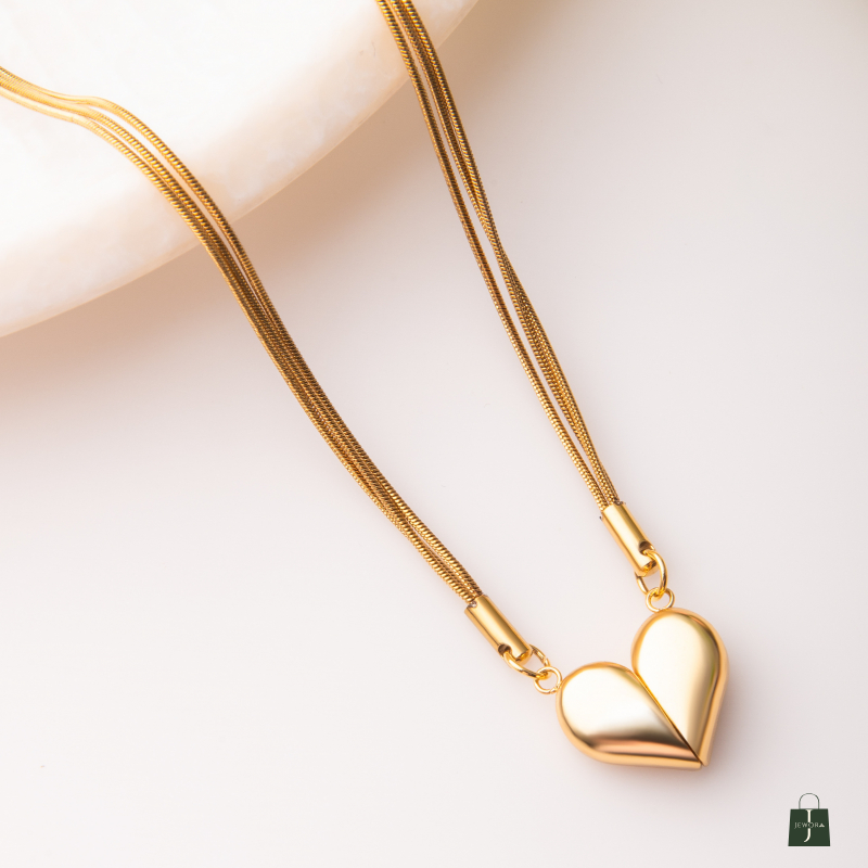 Discover style and innovation with the Kia Magnetic Anti-Tarnish Heart Chain. This modern chain features a magnetic heart closure that allows it to convert into a capsule design, giving you two looks in one. Finished with an anti-tarnish coating, it ensures long-lasting shine and durability, making it a versatile accessory for daily wear or special occasions.