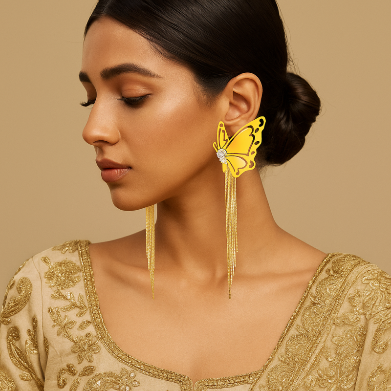 Gold plated party wear drop earring Made of Stainless Steel, Anti-Tarnish Plating, Hypoallergenic, and Skin-friendly. Crafted with a high-quality gold-plated finish.