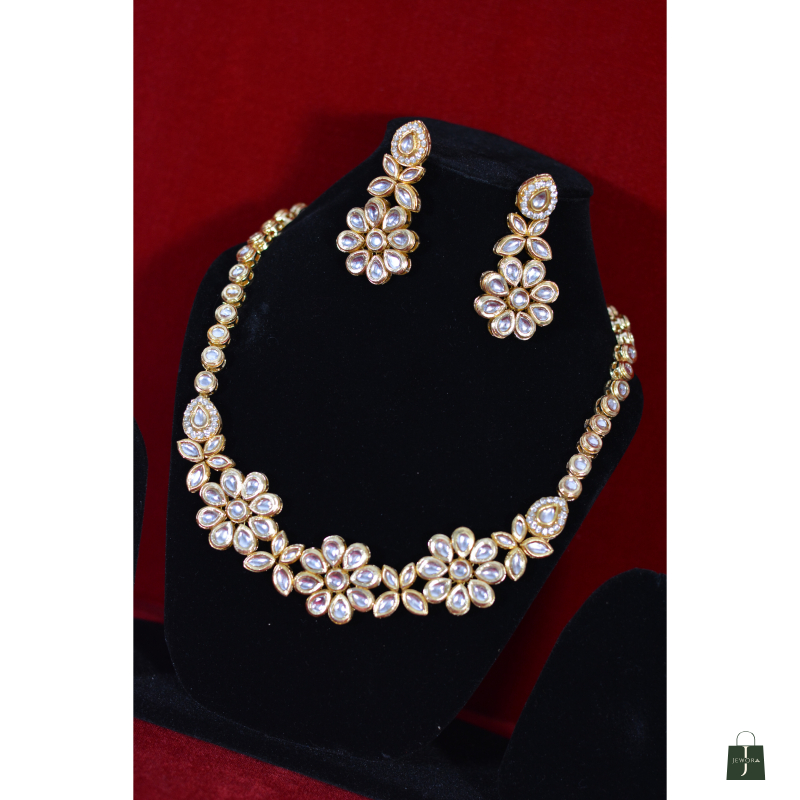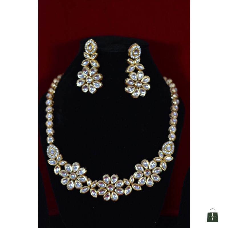 Kundan Flower Necklace Set Elegant Bridal Jewellery