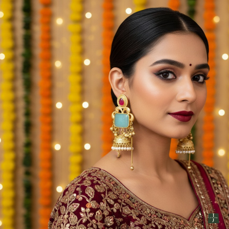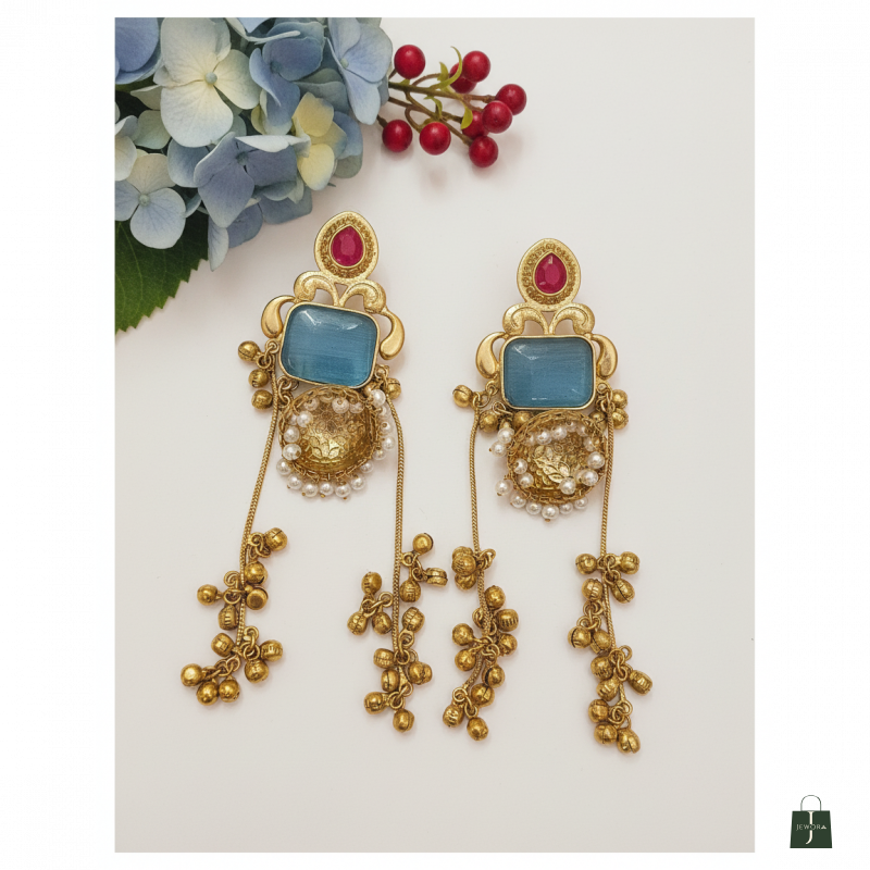 These earrings are perfect for anyone who loves fusion jewelry with a regal touch and a hint of pastel freshness.