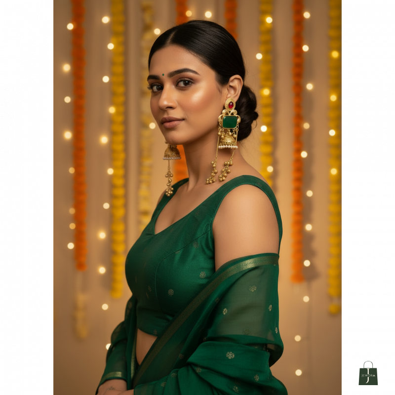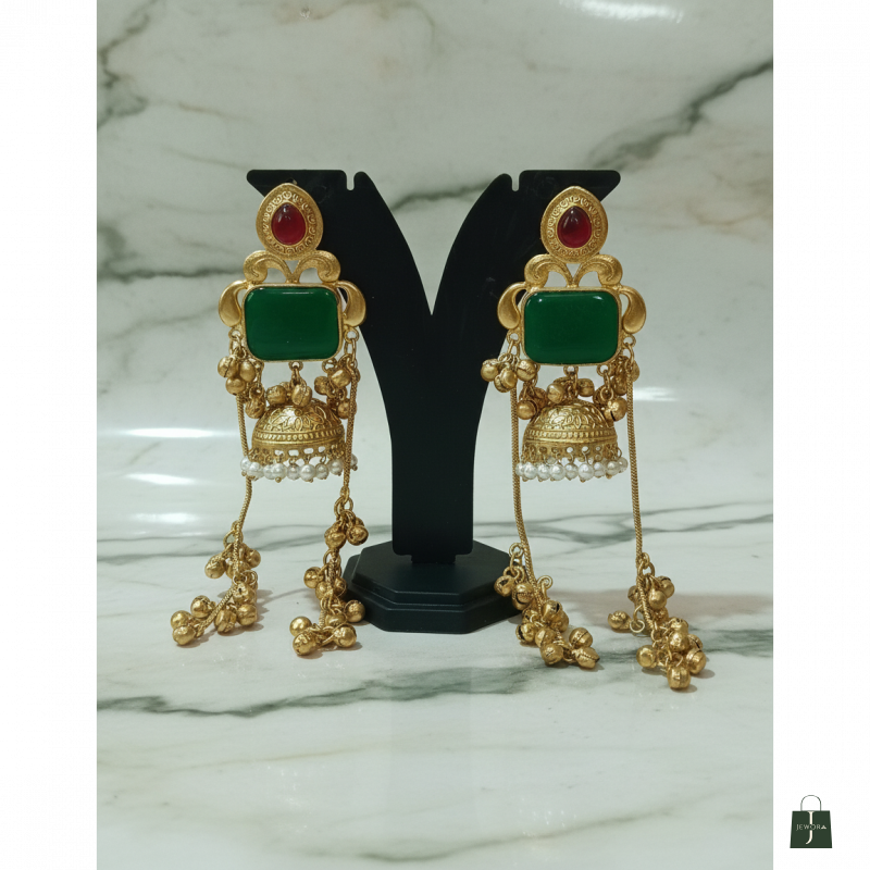 Name: Mint Bloom Kundan Kashmiri Jhumka Tassel Earrings