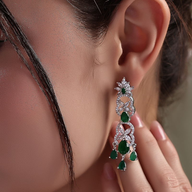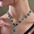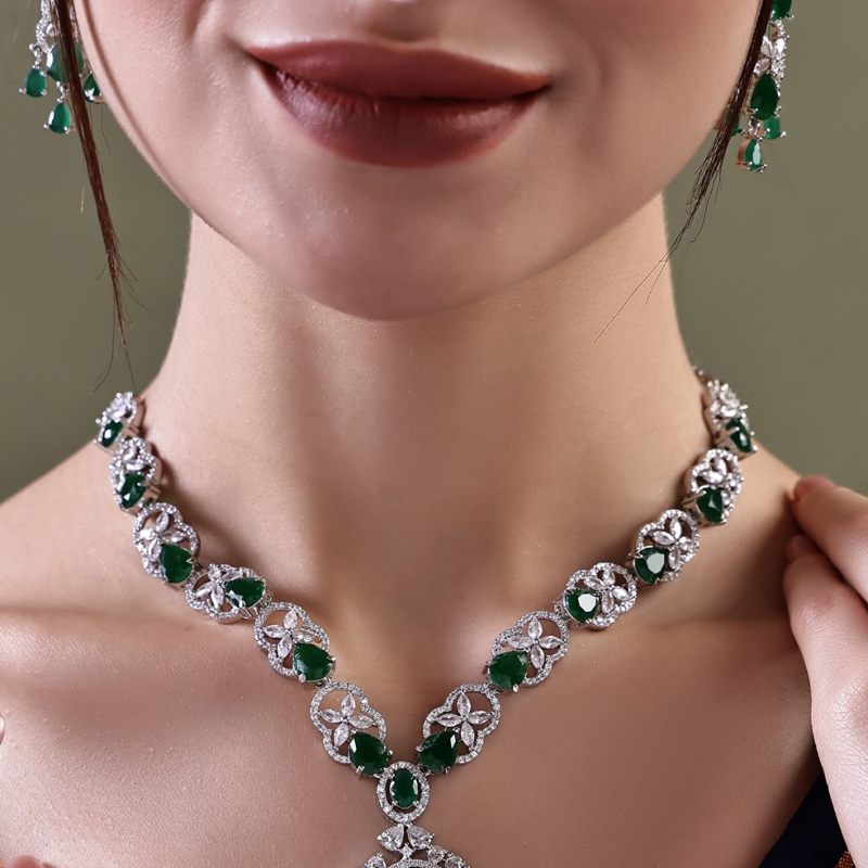 Indulge in timeless elegance with this lavish emerald green and white zircon necklace set, crafted to make a statement of refined luxury. The rich emerald-toned stones are beautifully complemented by shimmering white zircon accents, creating a perfect balance of bold color and delicate sparkle.