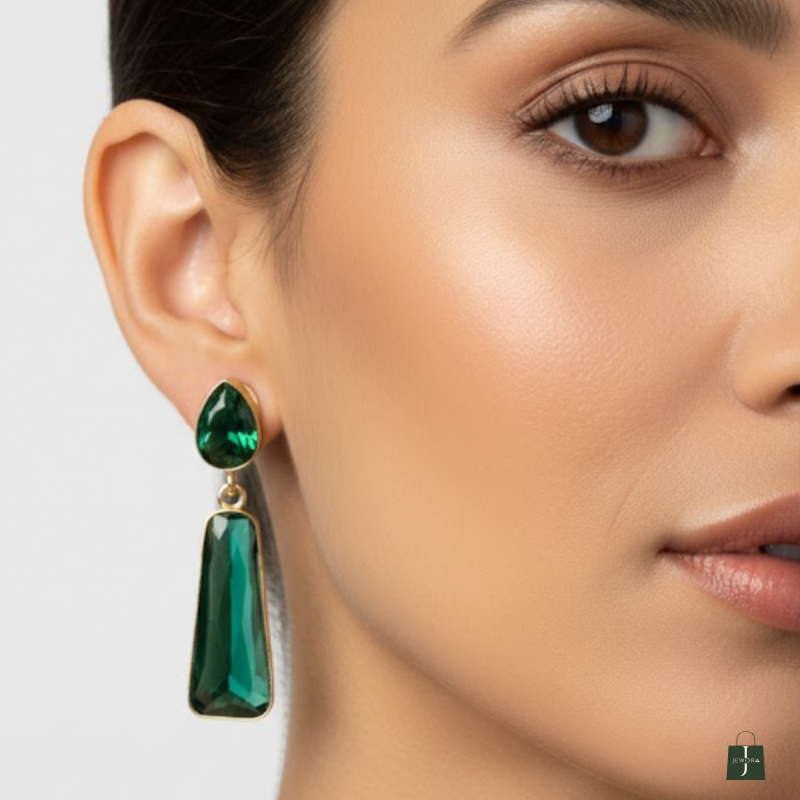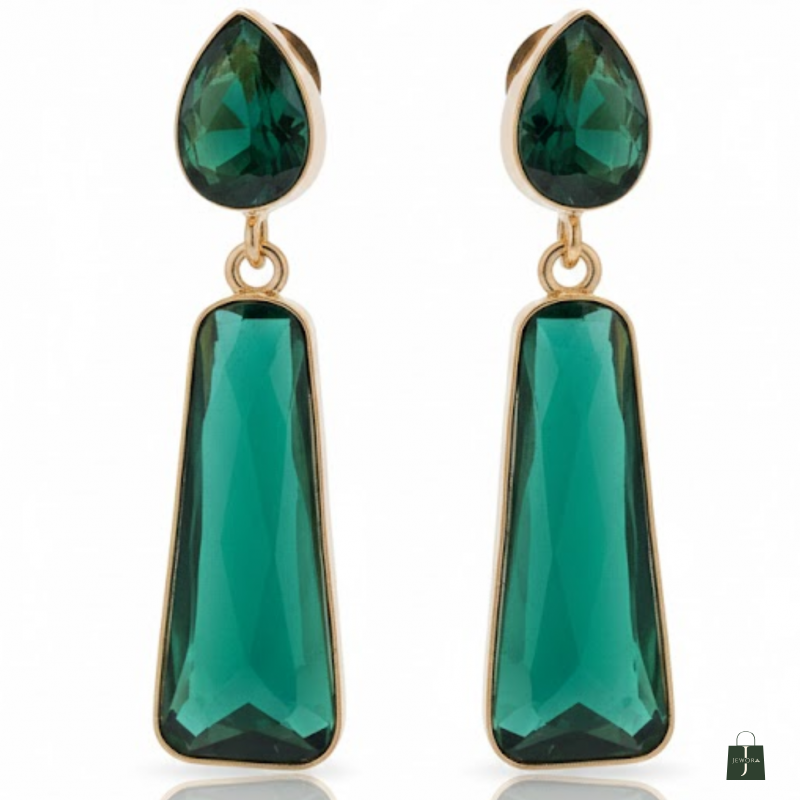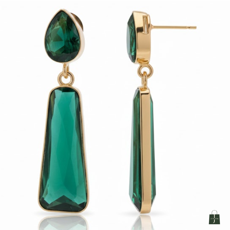 Elegant long-drop earrings featuring a shimmering teardrop top and a sleek prism-shaped stone. Bold, classy, and perfect for festive and evening looks.