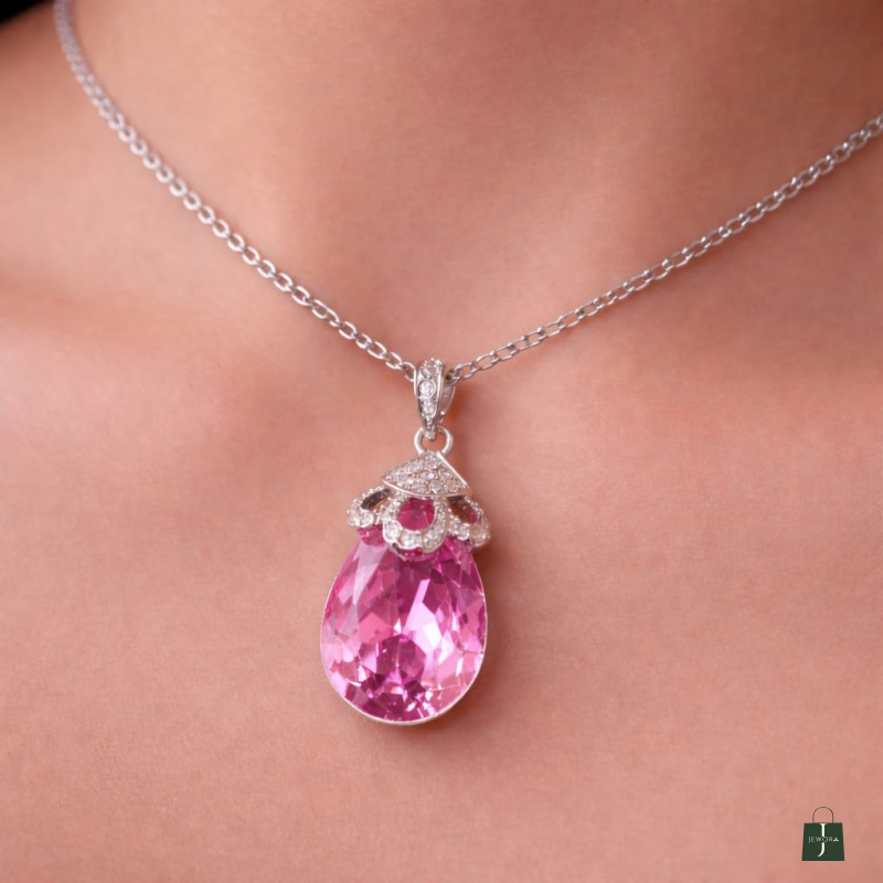 Giftariaa Swarovski Pink Crystal Teardrop Pendant