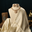 Step into timeless tradition with this elegantly handcrafted pearl necklace set, inspired by classic Indian heritage aesthetics. The necklace features multiple strands of luminous white pearls, thoughtfully arranged to create a rich, layered look that sits gracefully along the neckline.