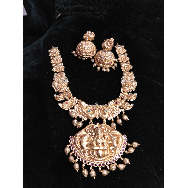 Matt finish Lakshmi necklace with earrings