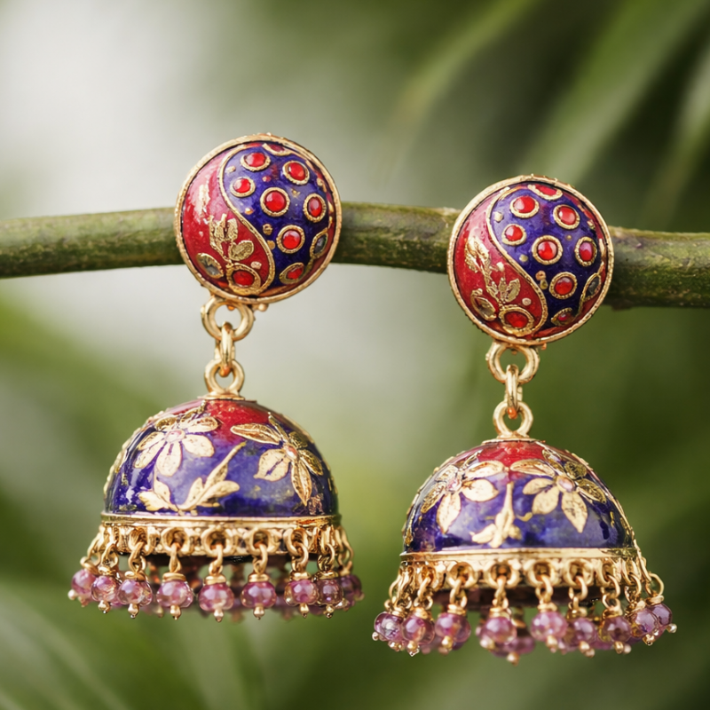 Meenakari Jhumka Earrings with Beaded Drops