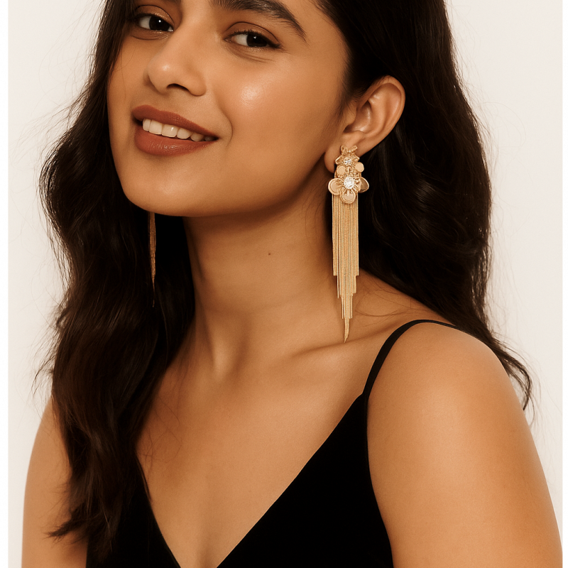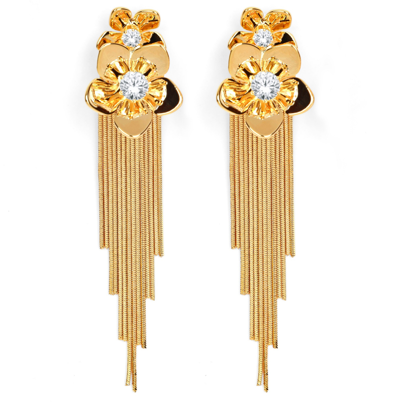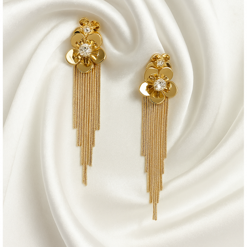 Metal flower tassel tango Earring made of Stainless Steel, Anti-Tarnish Plating, Hypoallergenic, and Skin-friendly.