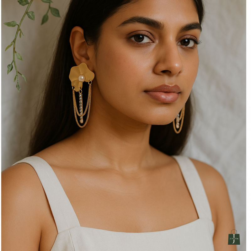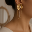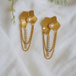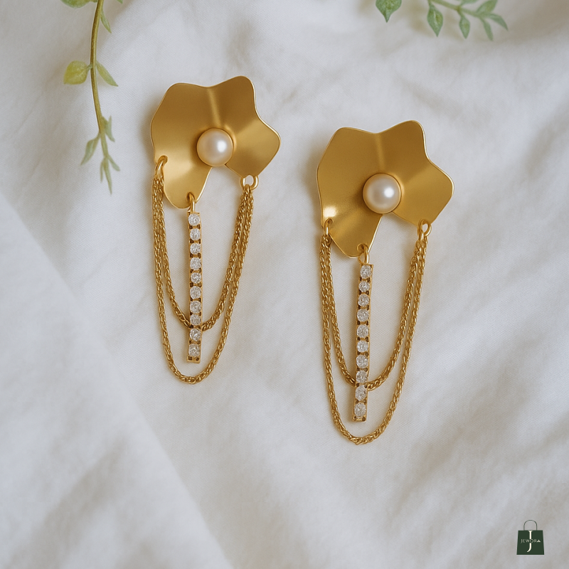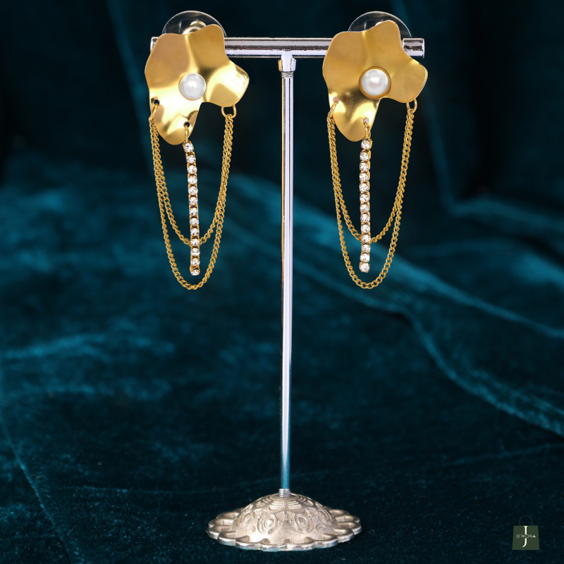 Metal Flower drop earring with zirconic stone made of Stainless Steel, Anti-Tarnish Plating, Hypoallergenic, and Skin-friendly.