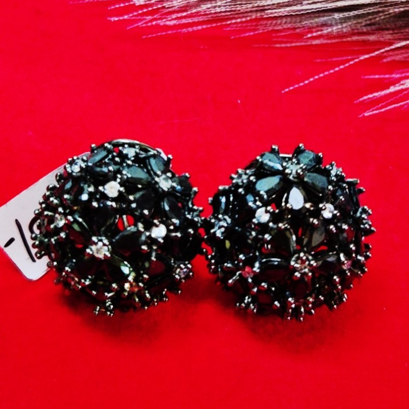 Add a touch of bold elegance to your look with these stunning floral dome stud earrings. Designed with a clustered arrangement of black and clear crystals, these earrings create a beautiful blooming flower effect. The silver-tone finish enhances the contrast and sparkle, making them perfect for evening wear and statement styling. With their rich, dimensional design, these studs bring a luxurious and contemporary edge to any outfit.