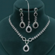Make an unforgettable impression with the Midnight Royale Teardrop Statement Necklace Set. Designed in a refined silver-tone finish, this exquisite set features deep black teardrop stones framed by shimmering white crystals for a radiant halo effect.