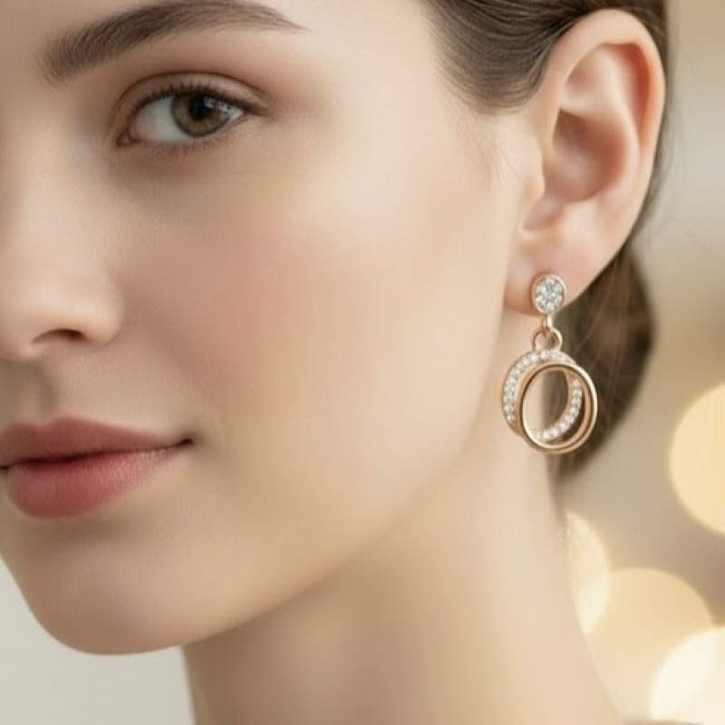 Add a touch of modern elegance with these rose gold polish drop earrings. Designed with a stylish double-circle pattern and embellished with sparkling Cubic Zirconia stones, these earrings offer a perfect balance of simplicity and shine. The lightweight design makes them comfortable for all-day wear, while the subtle sparkle makes them ideal for both casual outings and special occasions.
