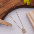 The pendant is suspended from a sleek, fine gold chain that drapes gracefully around the neck, making it comfortable and lightweight for all-day wear. Its simple yet stylish design makes it perfect for layering with other necklaces or wearing alone as a delicate statement piece. Whether styled with casual denim, workwear, or evening attire, this necklace adds a polished finish to your look.