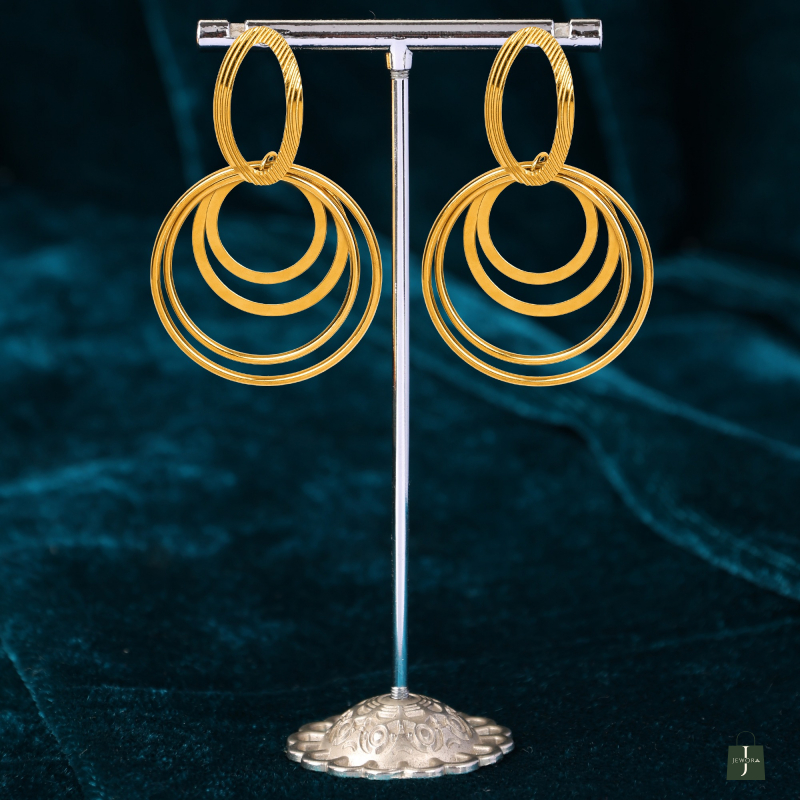 Gold plated party wear drop earring Made of Stainless Steel, Anti-Tarnish Plating, Hypoallergenic, and Skin-friendly. Crafted with a high-quality gold-plated finish.