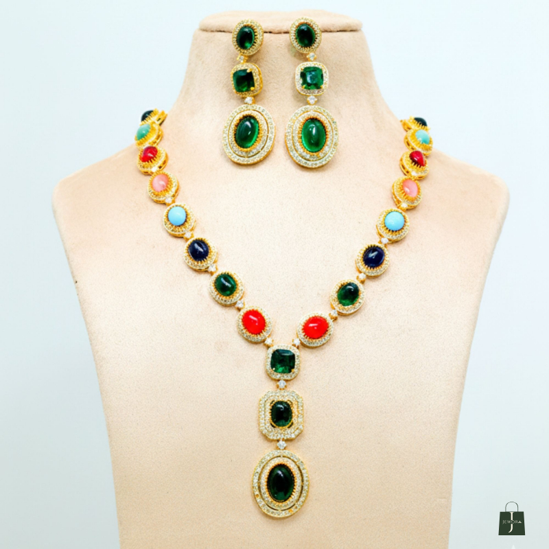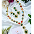 Make a bold style statement with this stunning Multicolour Oval Stone Necklace Set, designed to add effortless glamour to your festive and party looks. Crafted with beautifully polished oval stones in rich jewel tones and surrounded by a shimmering gold-finish setting, this necklace set is elegance with a modern twist.