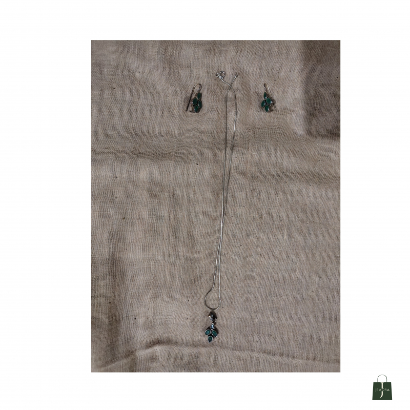 92.5 sterling silver jewellery set with panna stones . Elegant and beautiful for everyday and party wear