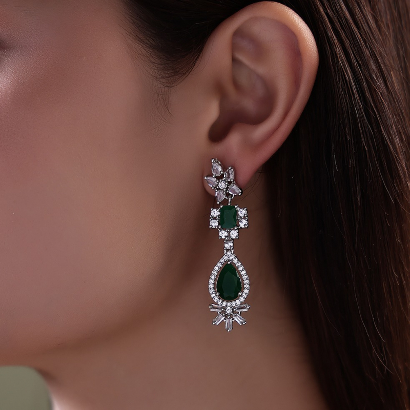 Stunning emerald green and white zircon necklace set that exudes elegance and grandeur