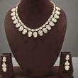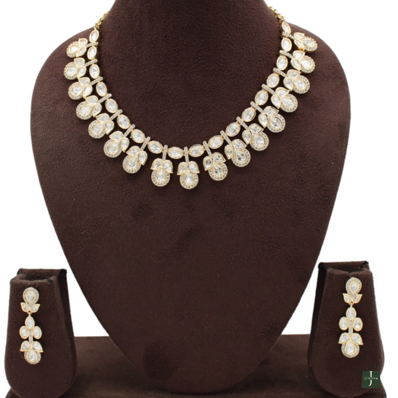 Paired with matching drop earrings that mirror the teardrop design, this set is perfect for weddings, receptions, festive occasions, and evening celebrations. Its subtle sparkle and classic styling make it ideal for both bridal and party wear looks.