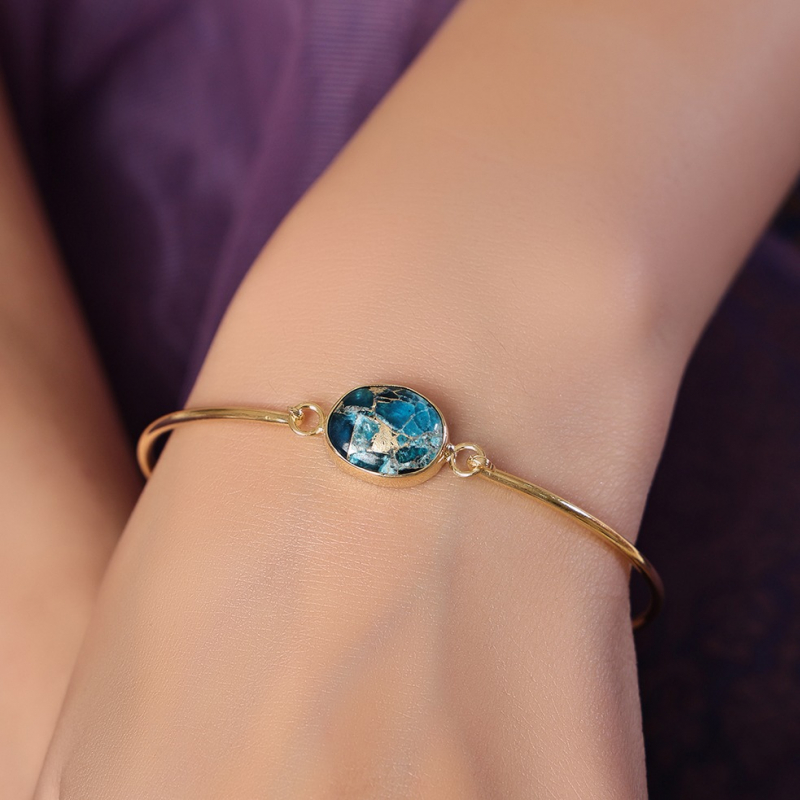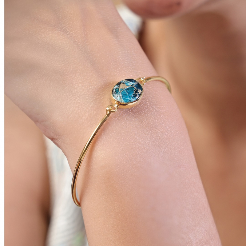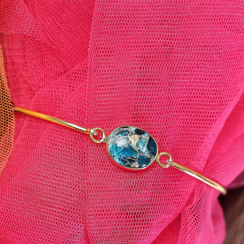 Add a touch of subtle elegance to your look with this minimal chain bracelet. Featuring a beautifully textured round blue stone with natural marble-like patterns, this piece is set in a sleek gold-toned frame. The delicate chain design offers a lightweight and comfortable fit, making it perfect for everyday wear and effortless styling.