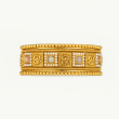 The Om Motif Gemstone Kada Bangle is a divine blend of tradition and spirituality. Intricately designed with embossed Om (ॐ) motifs, this bangle is adorned with pastel pink and emerald green gemstones surrounded by delicate pearl accents. The gold-polished finish enhances its regal charm, while the screw closure ensures a secure and comfortable fit. A perfect piece for festive and cultural occasions, this kada bangle adds both elegance and spiritual grace to your jewellery collection.