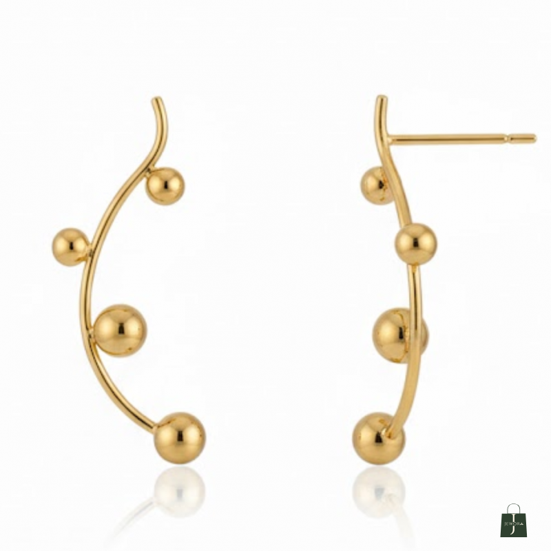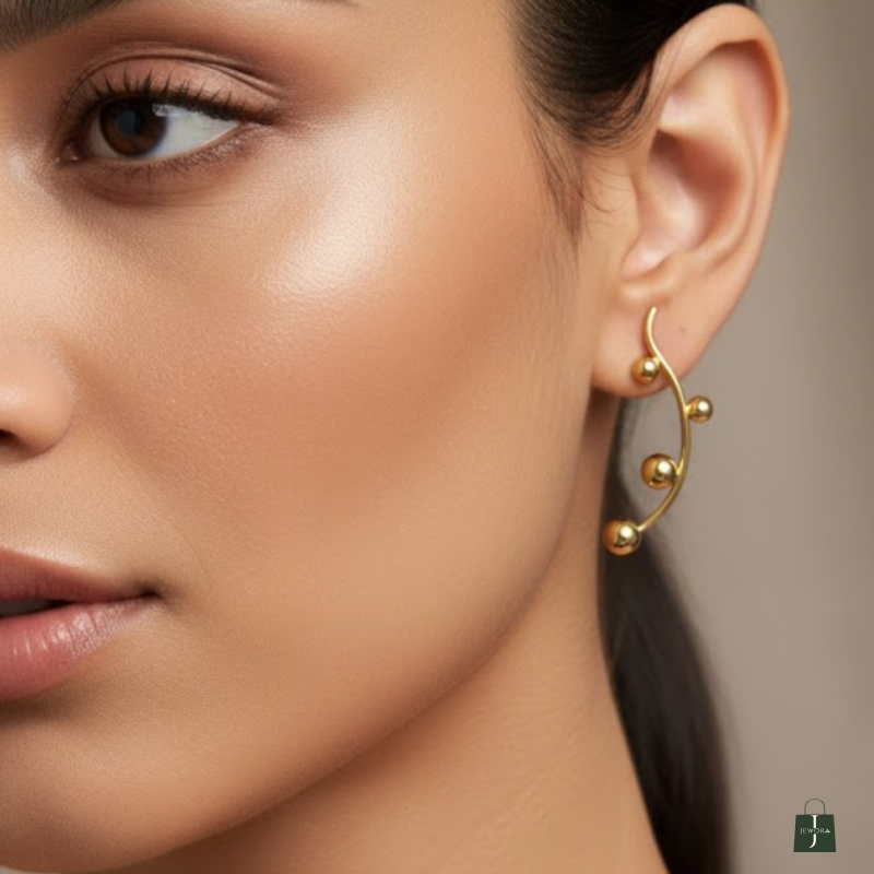 Sleek curved hoop-style earrings accented with chic metallic orbs. A lightweight, modern accessory perfect for elevating any casual or party look.